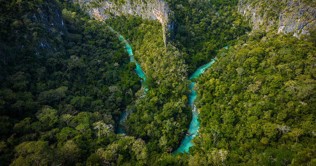 Localizado na Serra da Bodoquena, o Rio Salobra é uma formação natural única, onde as águas moldaram as rochas ao longo dos anos, esculpindo um percurso sinuoso que se entrelaça pela exuberância natural característica da região.