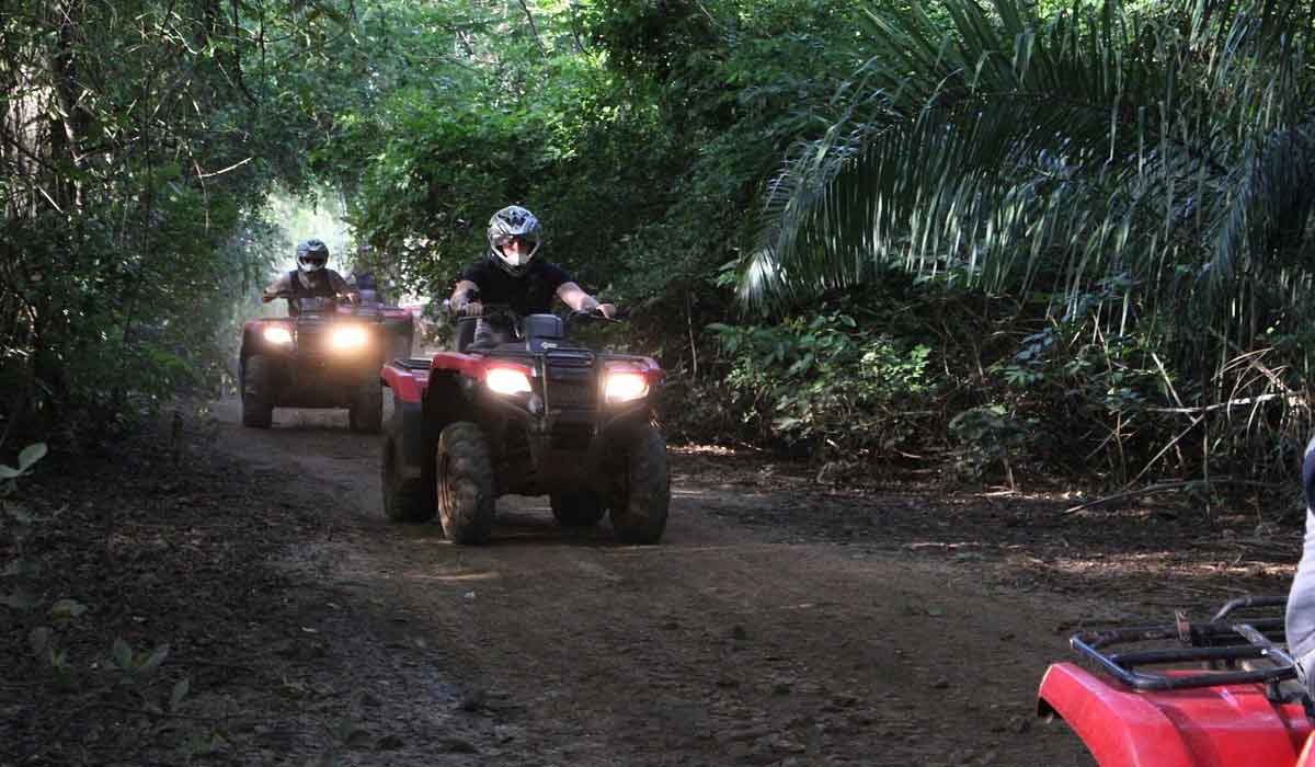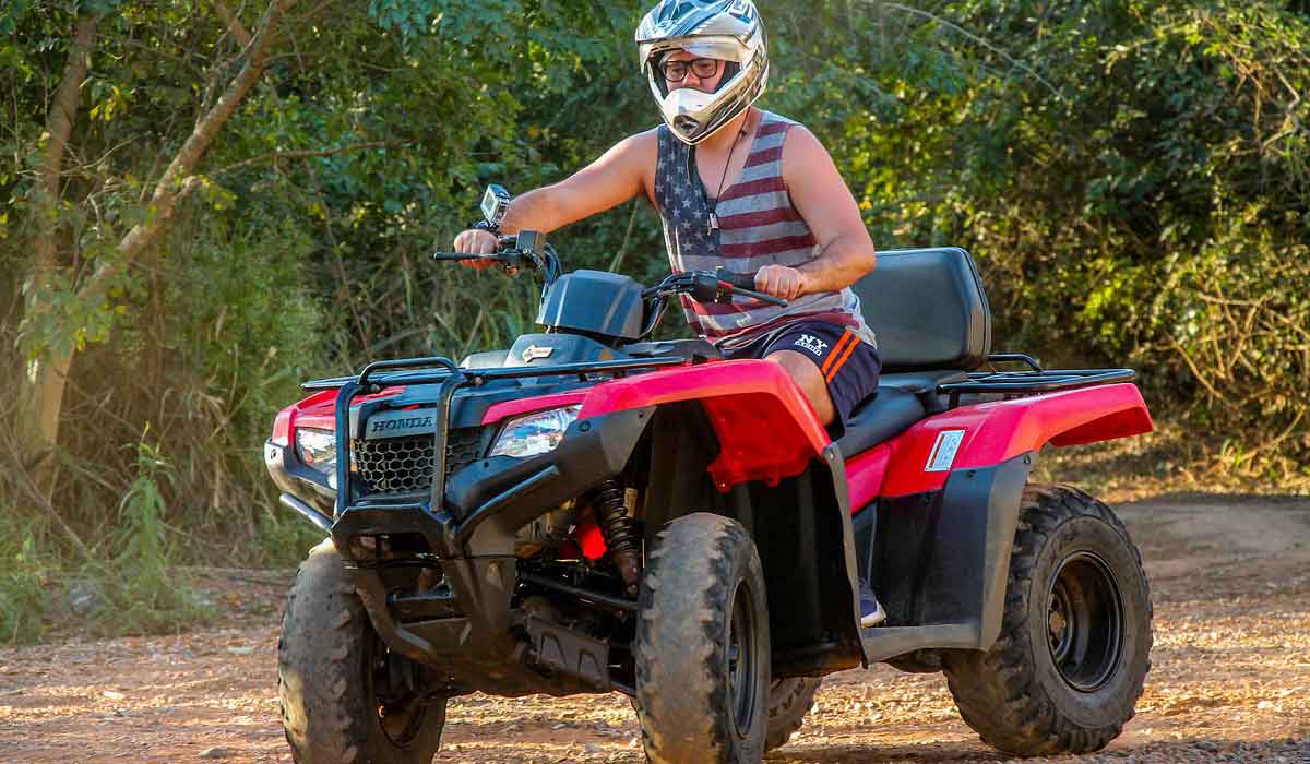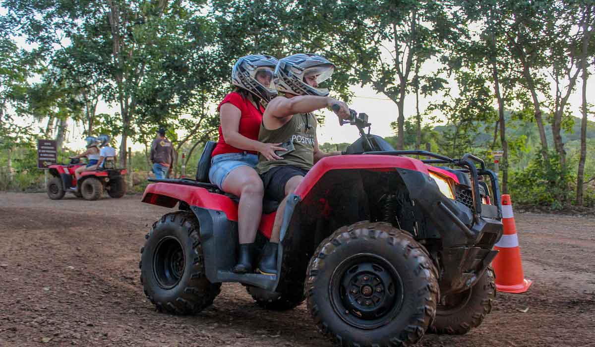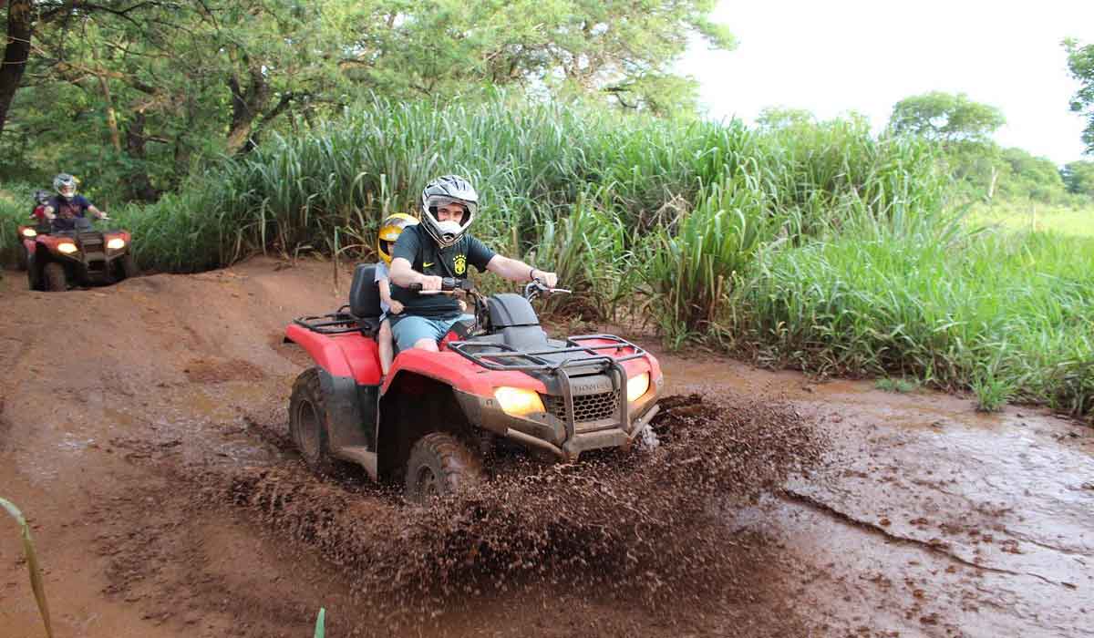 A atividade é realizada em em quadriciclos individuais ou duplos, todos acompanhados pelo monitor do atrativo. Até crianças de 6 anos podem participar (na garupa), sendo que para pilotar é necessário ter no mínimo 16 anos. A trilha é cercada por mata e de estrada de terra. Você ainda pode observar várias espécies de aves e animais silvestres durante os aproximados 8 quilômetros de percurso.