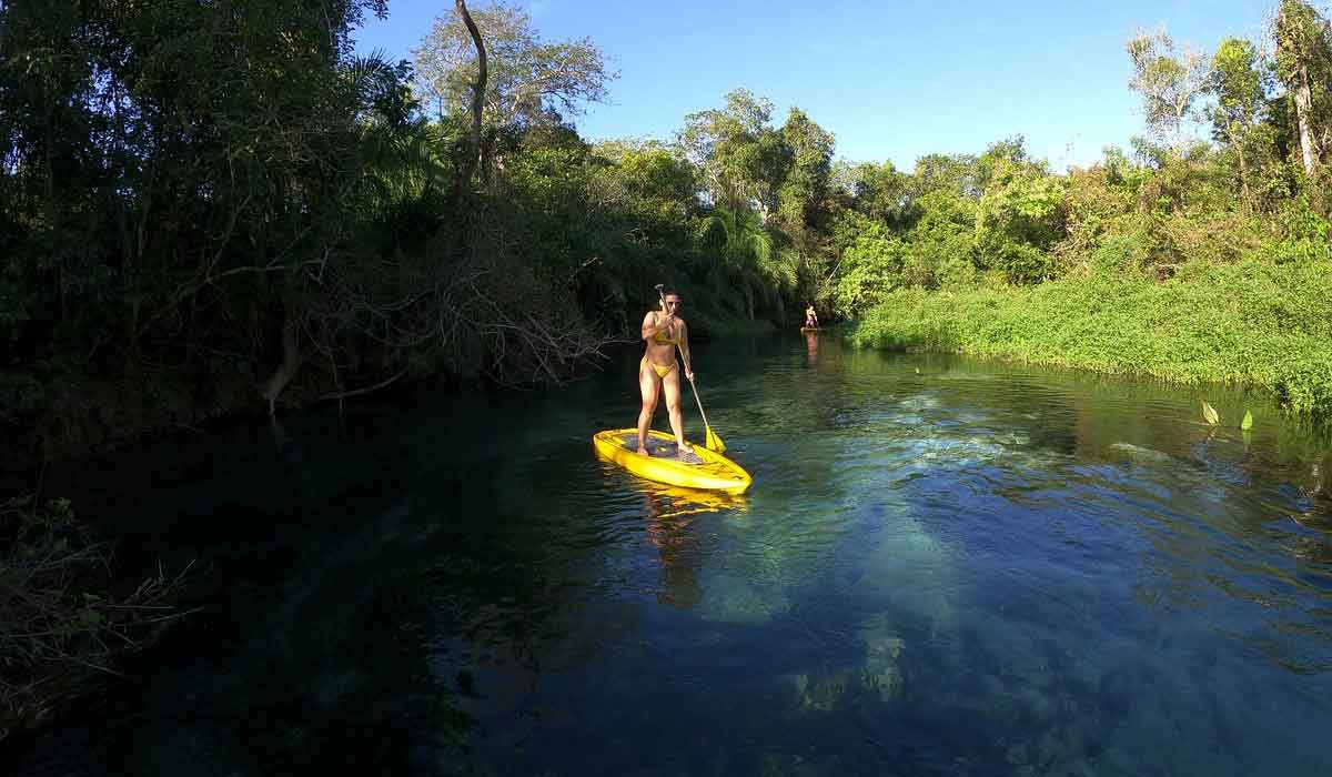 Durante a atividade, você fica de pé sobre uma prancha que boia suavemente sobre a água e vai remando no seu ritmo enquanto contempla a maior cristalinidade do rio. Assim, você vai poder observar a mata ciliar, aves, animais silvestres e ainda passar sobre os mais variados peixes. A vida aquática é tão nítida que você vai se sentir sobrevoando por toda essa biodiversidade. Absolutamente incrível!