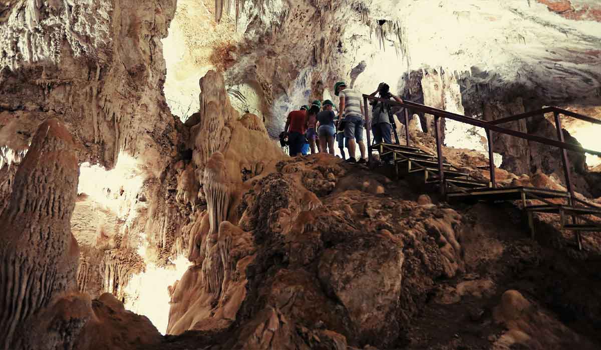 Finalmente, chega o momento de adentrar pela caverna. Impossível não se impressionar com a força e magnitude da natureza. Ao longo do percurso, você conhecerá formações espeleológicas absolutamente únicas e deslumbrantes. Ainda há a possibilidade de observar a coruja Suindara que habita no local. Para isso, é necessário usar lanternas além da própria iluminação artificial que há no interior da gruta. Já imaginou a sensação?!